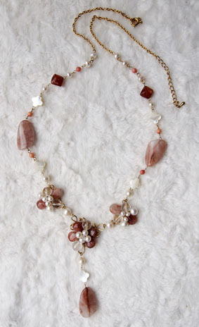 サンストーンの紅色とピンクのミネラルクォーツで創る